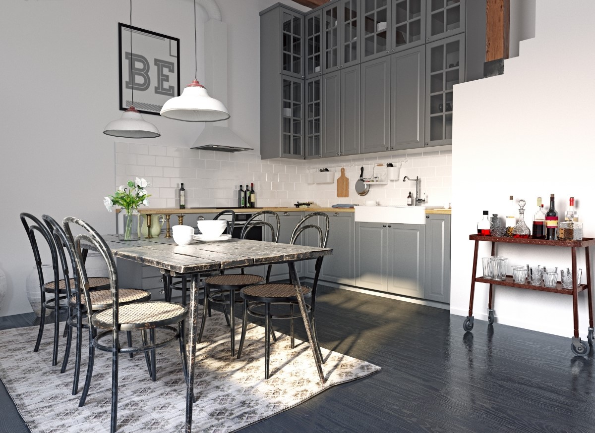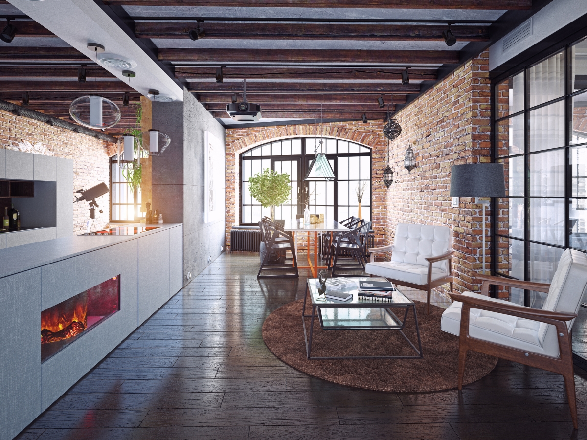 เป็นห้องครัวที่โชว์โครงสร้างของบ้านหรืออาคาร เน้นการโชว์ผนังปูนเปลือย หรือผนังอิฐสีส้มเห็นร่องปูนชัด ซึ่งการตกแต่งในสไตล์ลอฟท์นี้ มักมีการผสมผสานกับวัสดุอื่นๆ เช่น เครื่องใช้สเตนเลส ท่อเปลือย ตกแต่งออกแบบมาให้ความรู้สึกถึงความเท่ ดิบ และดูโปร่ง โล่ง สบายๆ