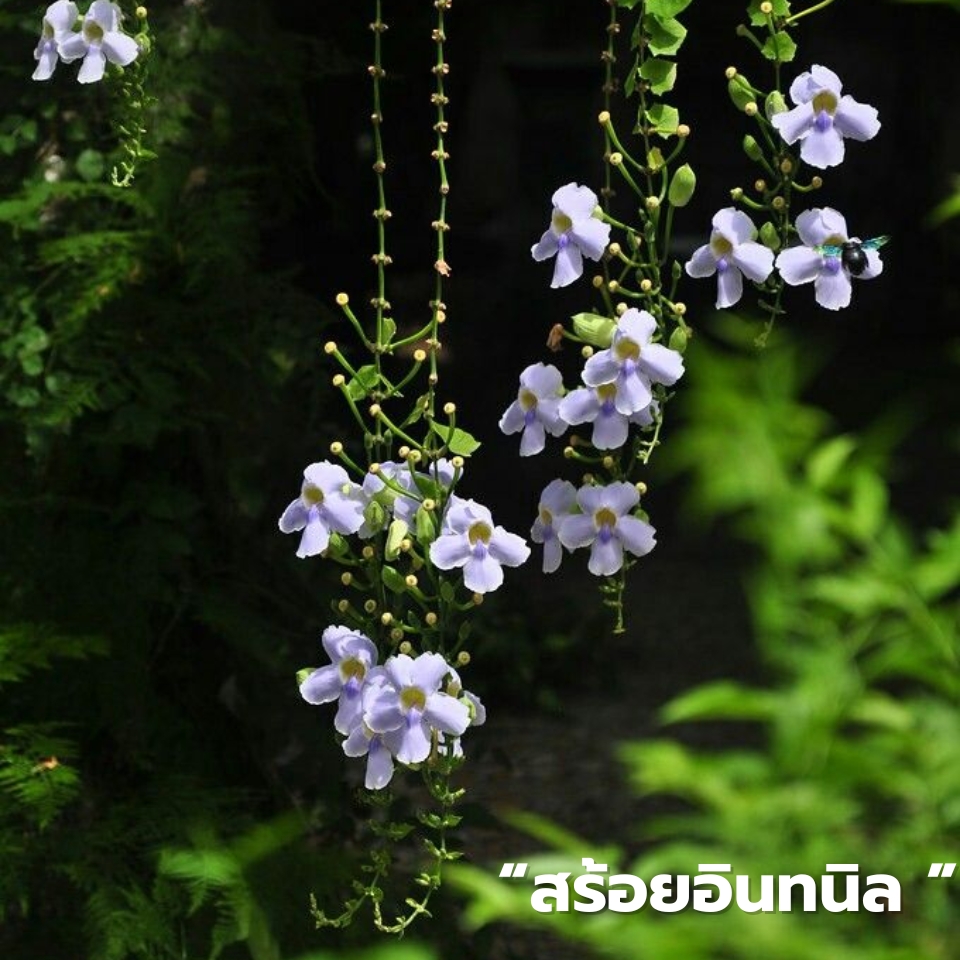 เป็นไม้เลื้อยดอกสีฟ้าอมม่วงหรือสีขาว สีสวยน่ารัก นิยมนำน้องมาปลูกเป็นไม้ประดับทั่วไป โดยมักจะนำมาปลูกประดับทำซุ้มบังแดด หรือ ปลูกให้ขึ้นตามหลังคาซุ้มม้านั่งต่างๆ เพราะดอกน้องมีสีสันสวยงาม และจะห้อยลงมาทำให้ดูสวยงาม นอกจากนี้ยังมีการทดลองนำสร้อยอินทนิลมาปลูกใกล้ๆ ประตู และหน้าต่าง เพื่อให้ใบของสร้อยอินทนิล ดักจับฝุ่น PM10 อีกด้วยน้าา