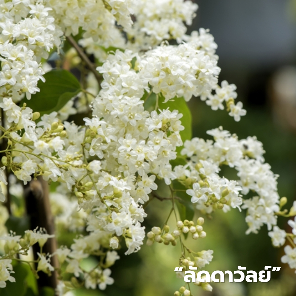 ตามมาด้วยต้นลัดดาวัลย์เป็นไม้เลื้อยขนาดเล็ก เวลาออกดอกจะเป็นช่อใหญ่สีขาวบานสะพรั่ง