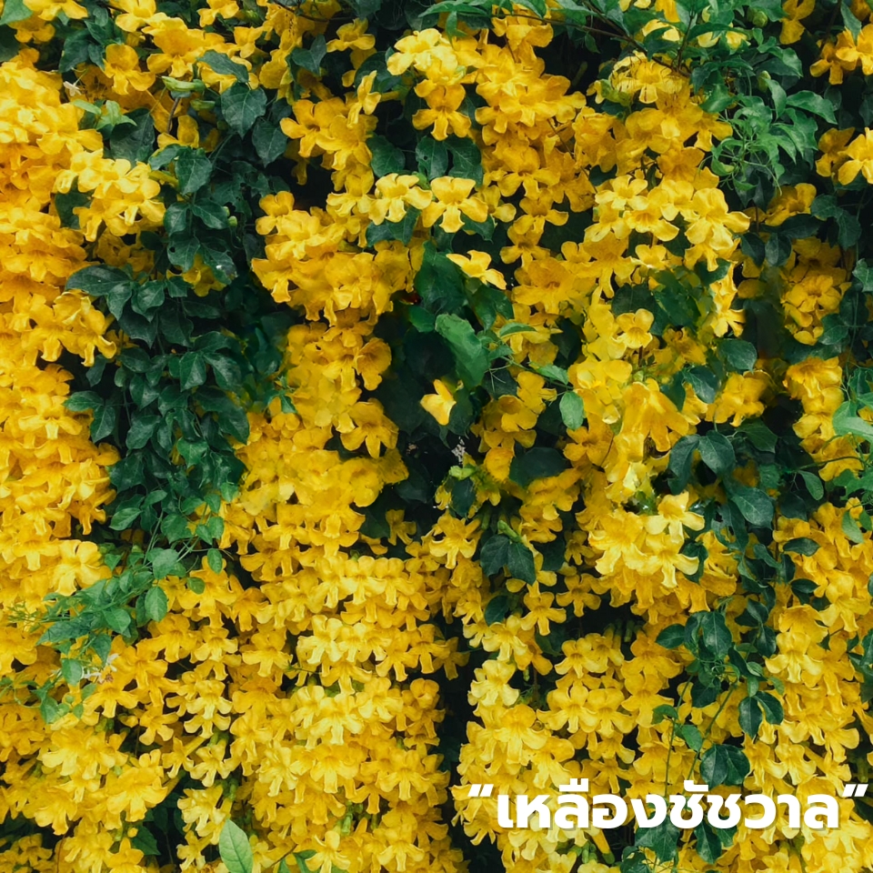 มาต่อกันด้วยไม้เลื้อยดอกสีเหลืองที่ทำให้บ้านดูอบอุ่นกันบ้าง กับเหลืองชัชวาลหรือแคทส์คลอว์ จะเป็นไม้เลื้อยเนื้อแข็งขนาดเล็กถึงกลาง ส่วนใหญ่มักจะปลูกเป็นไม้เลื้อยทำซุ้ม หรือทำเกาะกำแพงแทนตีนตุ๊กแก เพราะน้องโตเร็ว และมีเถาขนาดปานกลางไม่ทำลายพื้นผิวของวัสดุ จุดเด่นอีกอย่างของเหลืองชัชวาลคือออกดอกตลอดปีแต่จะออกดอกมากเป็นพิเศษในช่วงฤดูร้อนน้าา