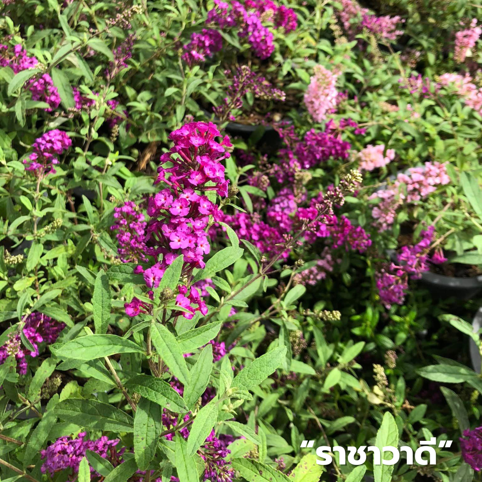 เป็นดอกไม้สีสวยสดใส กลิ่นหอมแรง และเป็นดอกไม้มงคล มีลักษณะเป็นไม้ยืนต้นขนาดกลาง ทรงพุ่มโปร่ง ใบมีขนอ่อนสากมือ ส่วนดอกออกเป็นช่อ ยาว 2-3 นิ้ว มีสีม่วงและสีขาว นิยมขยายพันธุ์ด้วยการปักชำและตอนกิ่ง โตค่อนข้างช้า แต่ออกดอกดกตลอดปี ไม่มีโรคและแมลงรบกวน แถมปลูกได้ในบริเวณแห้งแล้ง โตได้ในดินทุกชนิด แต่จะชอบดินร่วนปนทรายเป็นพิเศษ ไม่ต้องการน้ำมาก ไม่ชอบน้ำขัง เหมาะกับปลูกที่โล่งแจ้งเพราะชอบแสงแดดจัดตลอดทั้งวัน