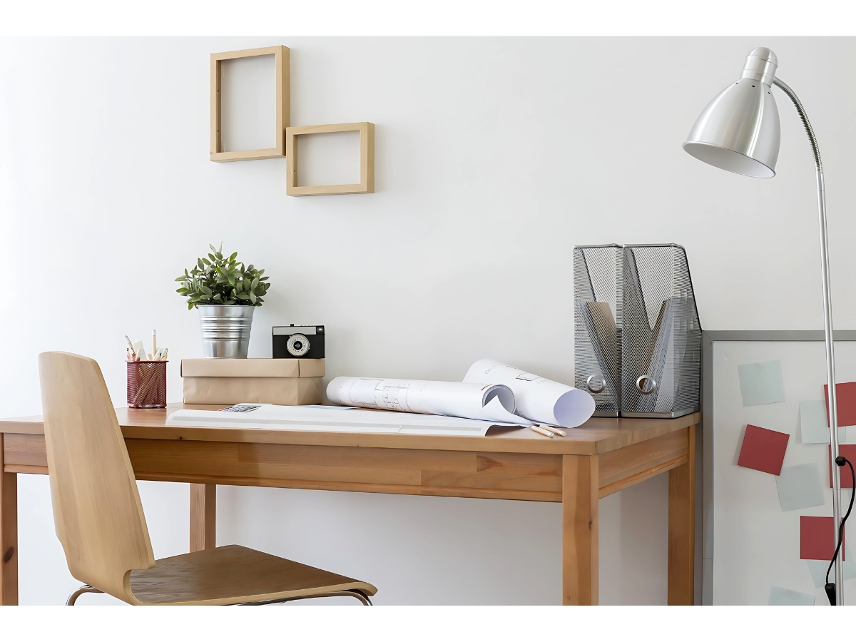 การตกแต่ง: ตกแต่งด้วยต้นไม้เล็ก ๆ เพื่อเพิ่มความสดชื่น หรือใช้ภาพศิลปะบนผนังเพื่อกระตุ้นความคิดสร้างสรรค์